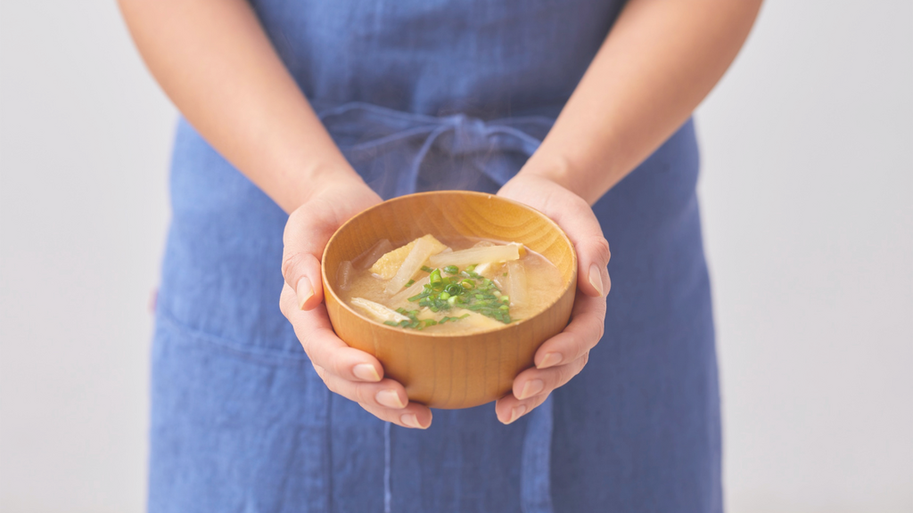 発酵によって生まれる味噌の酵素は、腸の動きを穏やかにサポートし、体を内側から温めてくれます。 特に夜は、消化の働きがゆるやかになる時間帯。 温かい汁物は胃腸の負担を減らしながら、安心感を与えてくれます 夜の味噌汁は、消化にやさしい具材を選ぶのがポイント。 豆腐やわかめ、季節のやさしい野菜などを合わせると、軽くても満足できる一杯になります。 昆布やかつお節でとったやさしい出汁に、自然な塩味のある味噌を合わせると、深みのある味わいに仕上がります。 お腹が温まることで呼吸も深まり、心もふっとゆるみます。 一日の終わりに、自分をやさしく包み込むような一杯を。