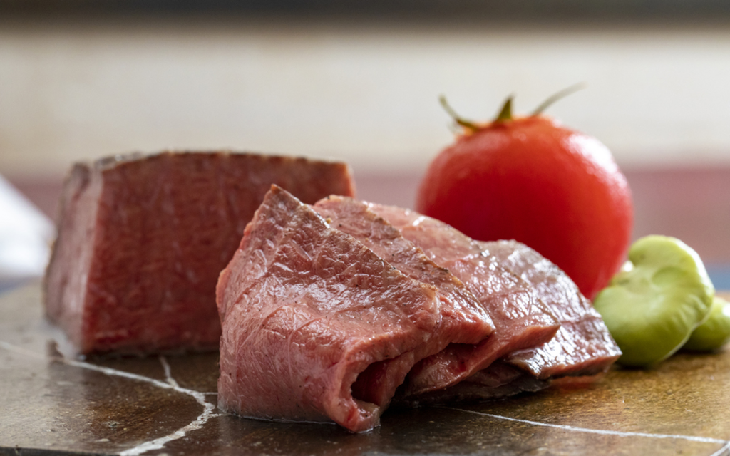 鏡山牧場で育てた八崎牛のモモ肉を、岩塩と黒胡椒のみで味付け。赤身の旨みが際立つ、無添加・しっとりジューシーなローストビーフです。そのままでも美味しく、ご家族での特別な食卓におすすめです。