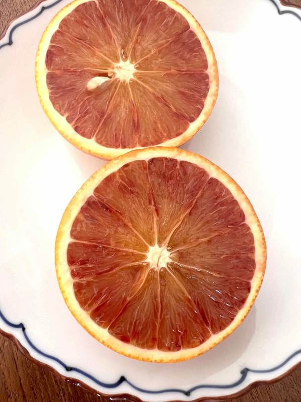 切ってみると中は赤みがかかっていて、ブラッドオレンジの色。綺麗。