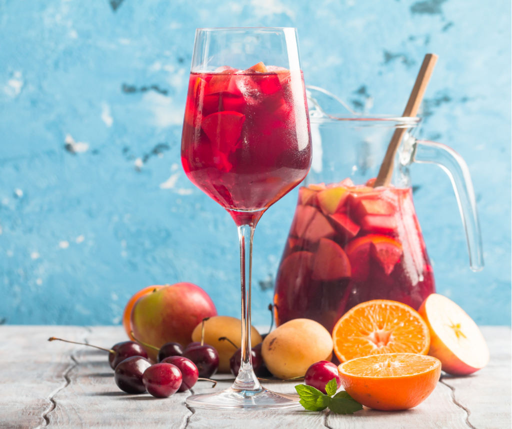 サングリアはスペインやポルトガルで親しまれているフルーツワインです。 赤ワインや白ワインにフルーツ、スパイス、甘みを加えて作ります。