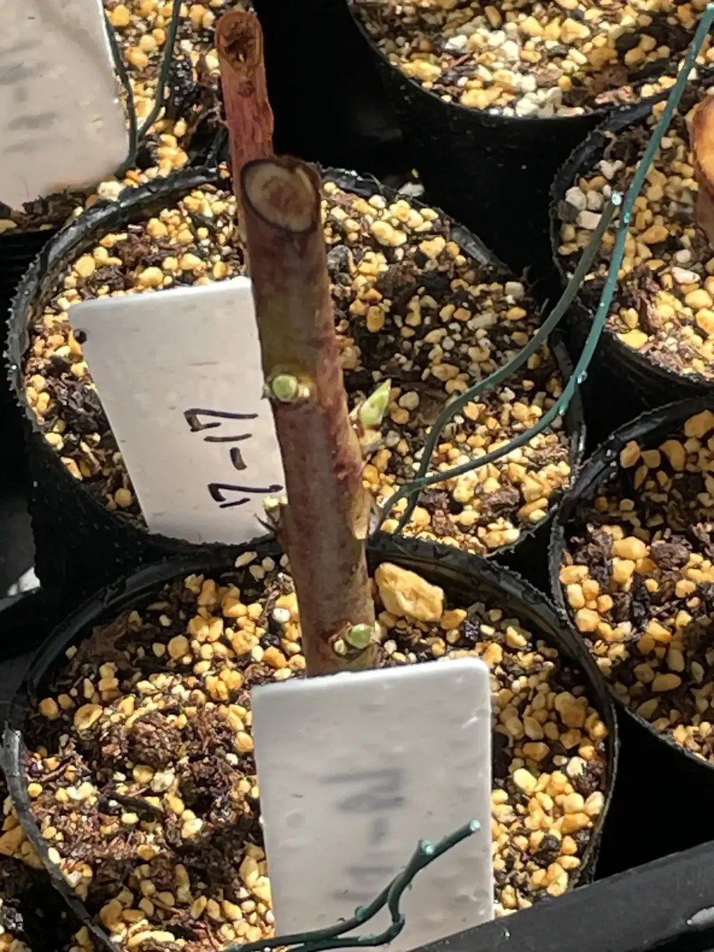 挿し木は、冬の休眠期に採取した枝を使用し、鹿沼土とピートモスを混ぜた用土に挿して管理してきました。水分管理がポイントで、乾燥を避けつつ過湿にならないよう注意しながら見守ってきました。その結果、こうして無事に萌芽を確認でき、ひと安心です。