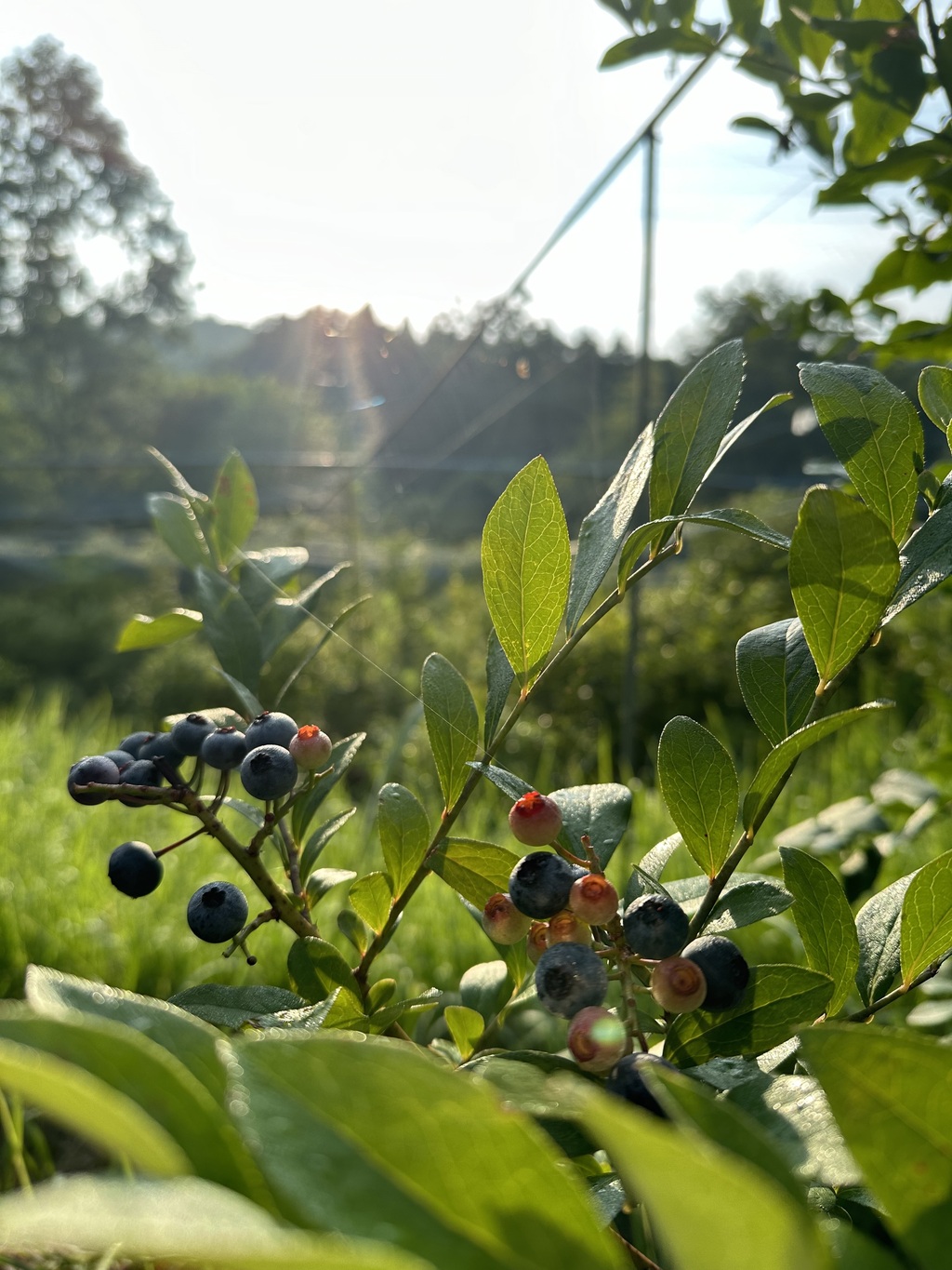 今朝の畑は、とっても気持ちよくって、ちょっと綺麗な文にしてみたかったのだ。 季節が一つ進んだ感じの、爽やかな空気の朝でした。 ブルーベリーはいよいよ佳境。畑の恵みを余すところなく頂いて、畑にとびきりの感謝を込めて、畑の仕事に精を出します。