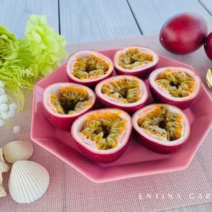 初めてパッションフルーツを注文しました。素敵な箱に6つきれいに梱包されて届きました。1時間ほど前に冷蔵庫にいれて少し冷やしていただきました。