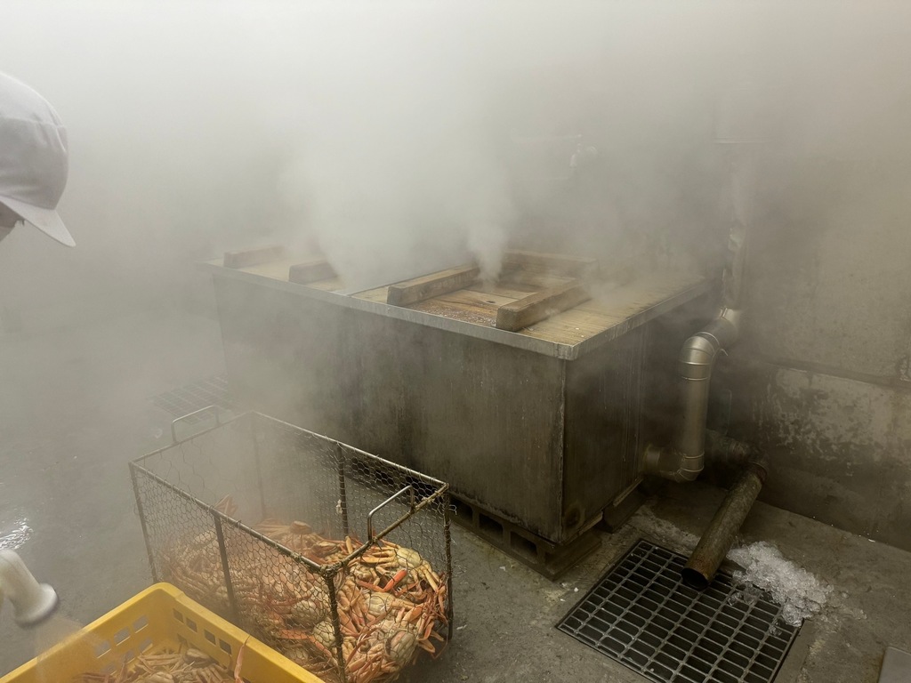 当店の茹でがには、 熟練の網元漁師が水揚げ直後に一気に茹で上げます。