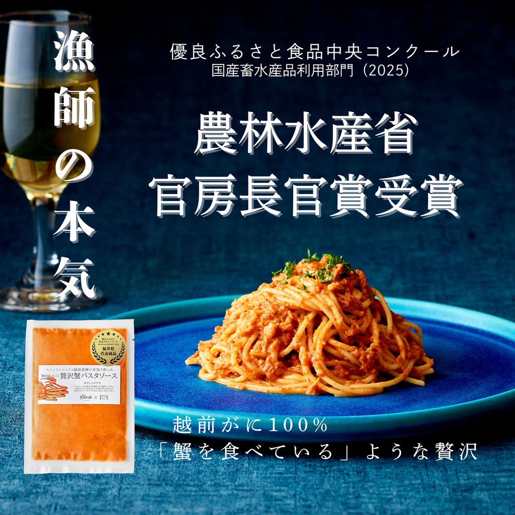 このたび、株式会社福丸ふれっしゅの「越前がに丸ごと贅沢蟹パスタソース」が和7年度【優良ふるさと食品中央コンクール】において、国産畜水産品利用部門(2025) 農林水産省官房長官賞を受賞いたしました。