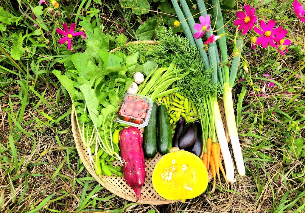 ふるば村自然農園では、除草剤も含めた一切の農薬、化学肥料を使用せず、当農園自家製の有機質堆肥や牡蠣殻、腐葉土、鶏糞などの有機物を畑に還元し25年以上土づくりをしています。年間80種類の多品目栽培を行い、旬の野菜をダイレクトに消費者の皆さんにお届けしています。