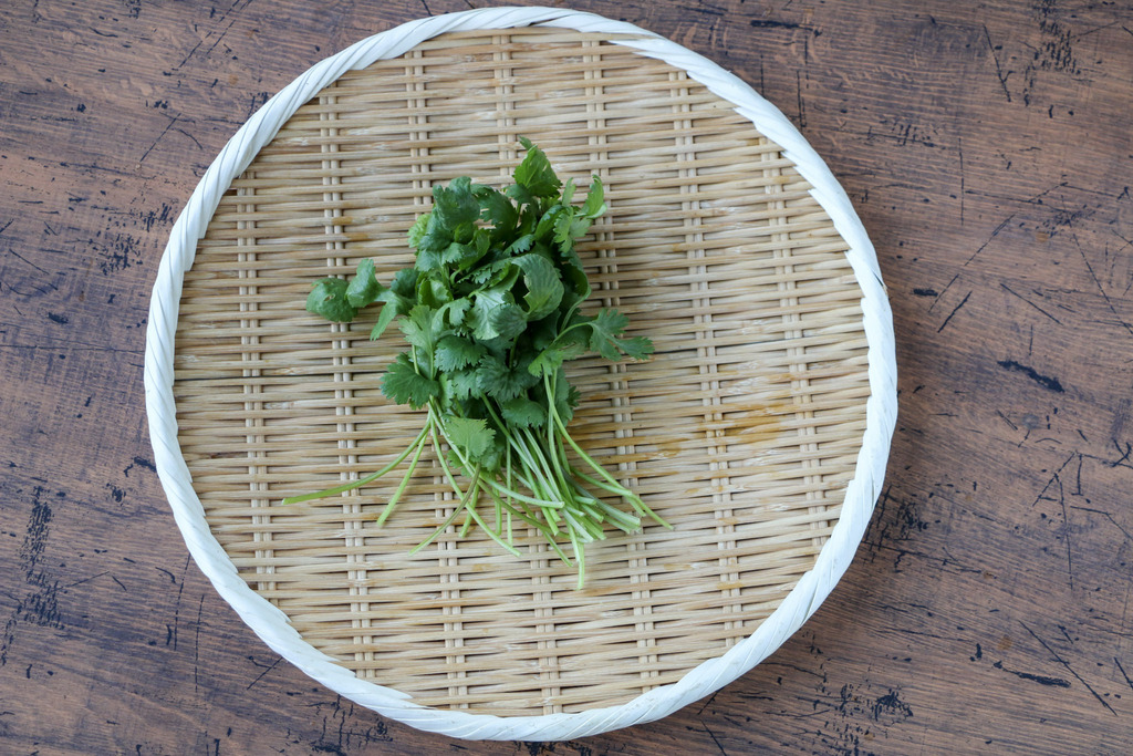 ・パクチー 地中海沿岸原産の香味野菜です。独特の強い香りが特徴。パクチーにはビタミンA、B1、B2、C、Eなど健康と美容にかかせないビタミン類と、消化吸収に必要な酵素、カリウム、鉄などのミネラルが豊富に含まれています。 ※パクチーは希望の方のみお入れします。