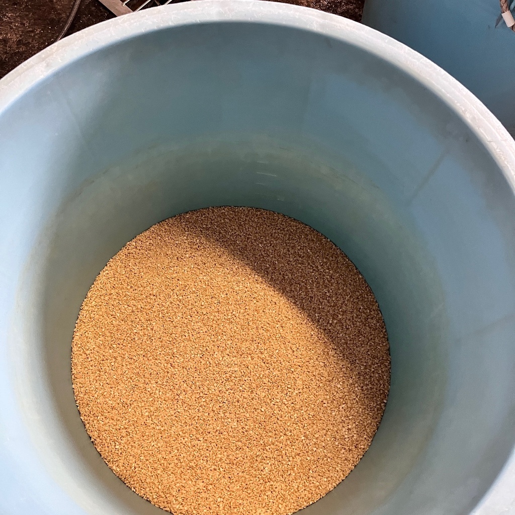今シーズン(2025-2026)の初仕込みは、10月21日(火)にスタートしました。 初日は、お米を洗い(洗米)水に浸す作業(浸漬)です。 今回は、白米、玄米ともに約20kgずつ仕込みました。