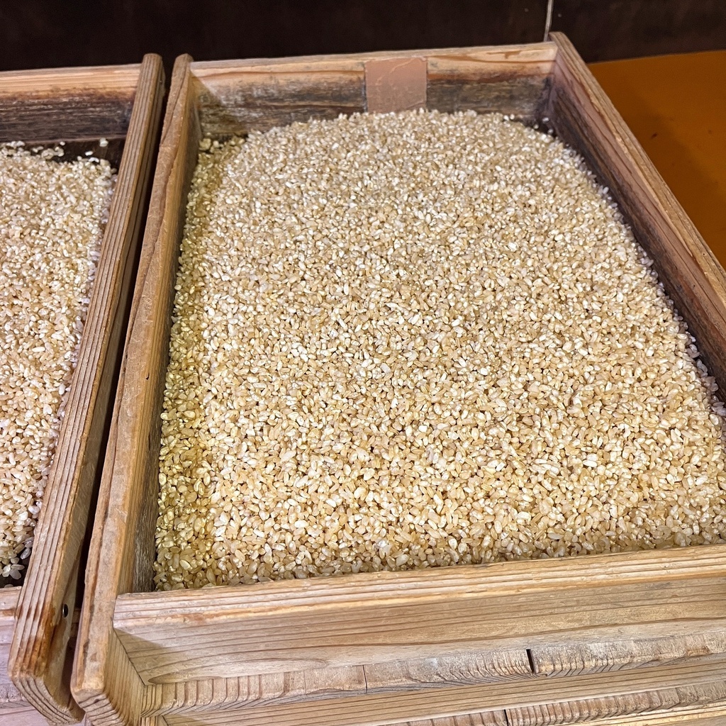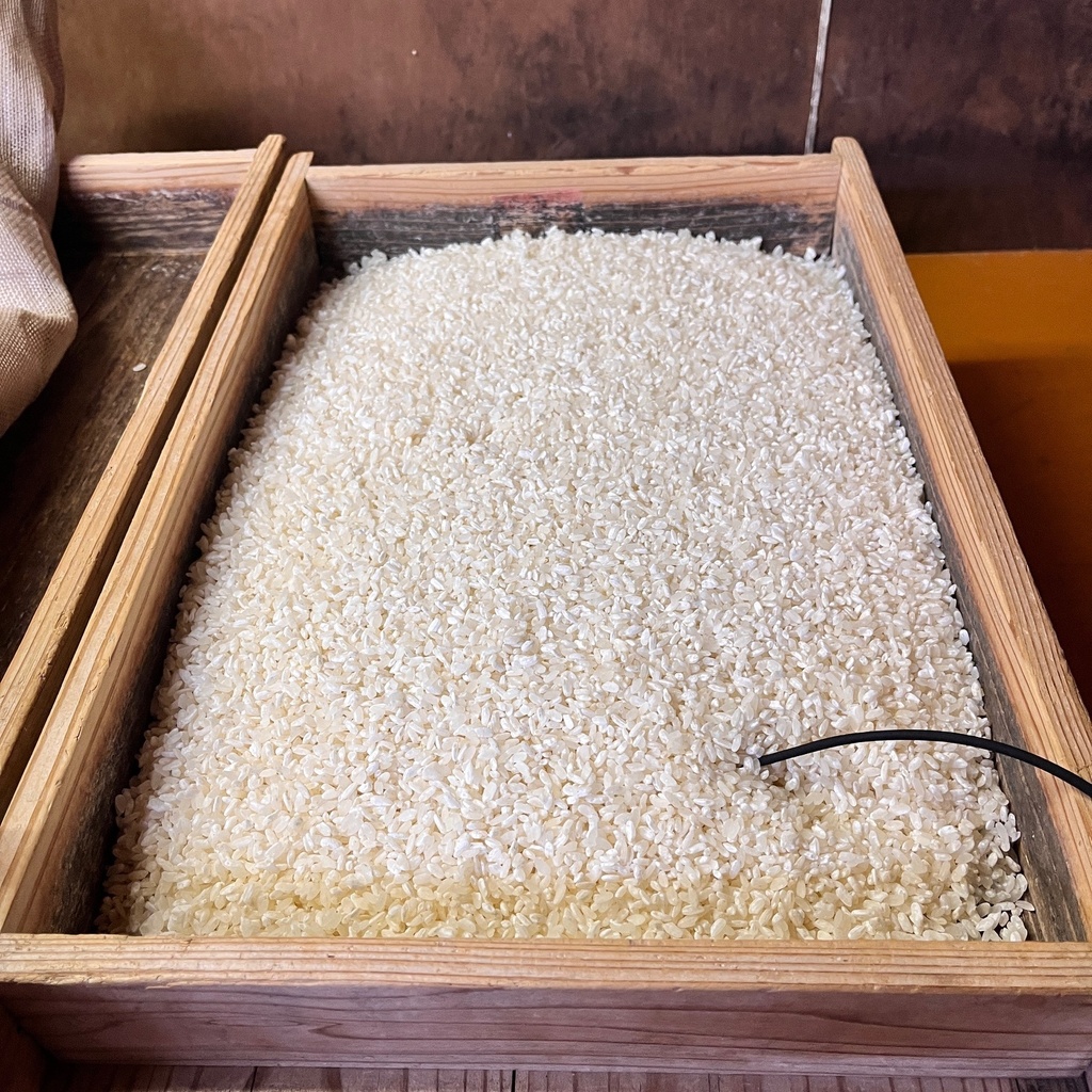 お米が白っぽくなり、麹菌が少しずつ繁殖していきます。 塊をほぐすことで、温度を下げ、お米一粒ずつに隙間をあけ空気をおくり繁殖しやすくします。 甘い栗のような香りも少しずつしてきます。