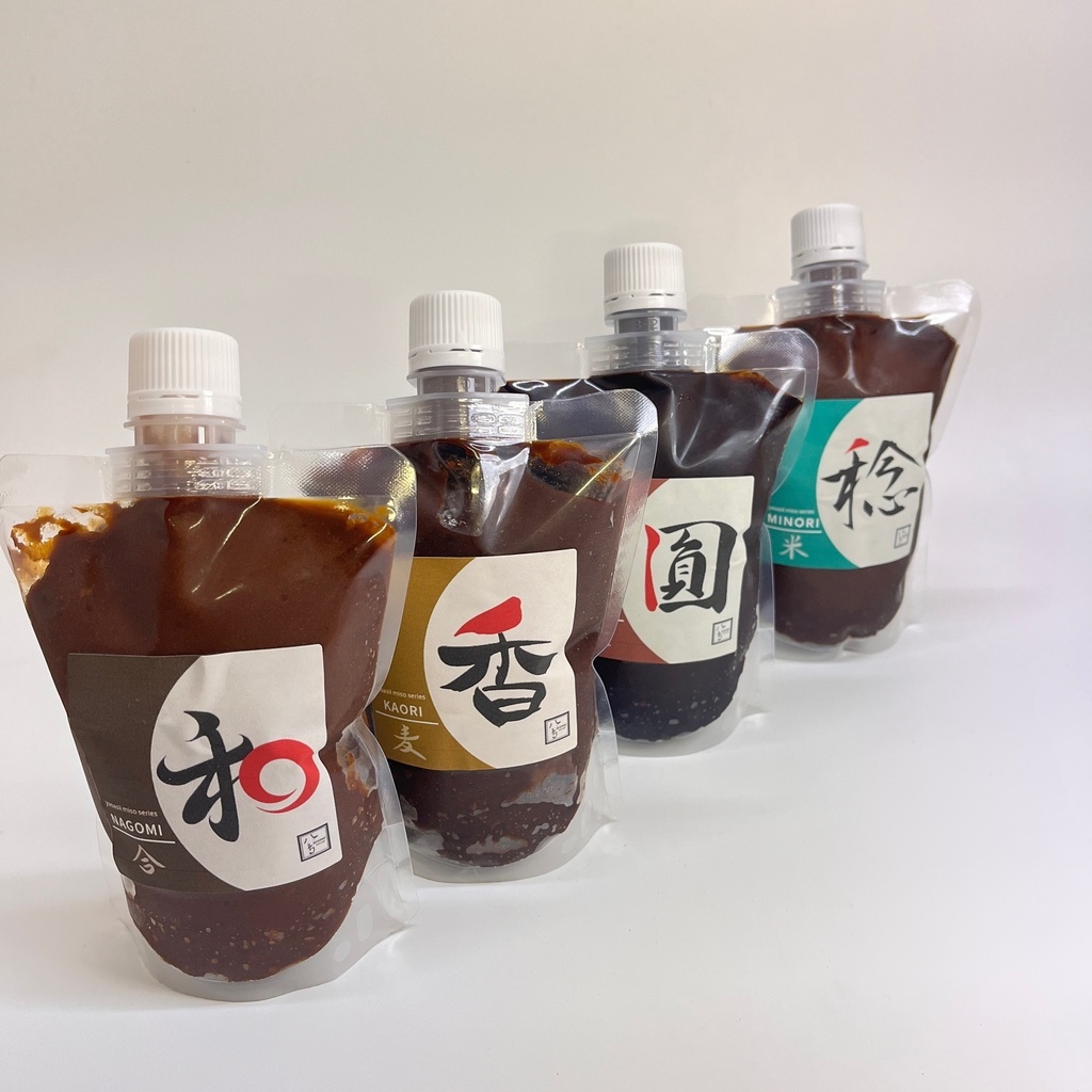 ■【全部まるっとお試し】<やさしいMISO4種セット>自然栽培の原材料のお味噌の食べ比べセット やさしいMISO稔(みのり):1年熟成の米みそ やさしいMISO圓(まどか):2年以上熟成の米みそ やさしいMISO和(なごみ):希少な自然栽培の大麦を使った、合わせ味噌 やさしいMISO香(かおり):希少な自然栽培の大麦を使った、麦味噌、名前の通り香り豊かな味噌です。