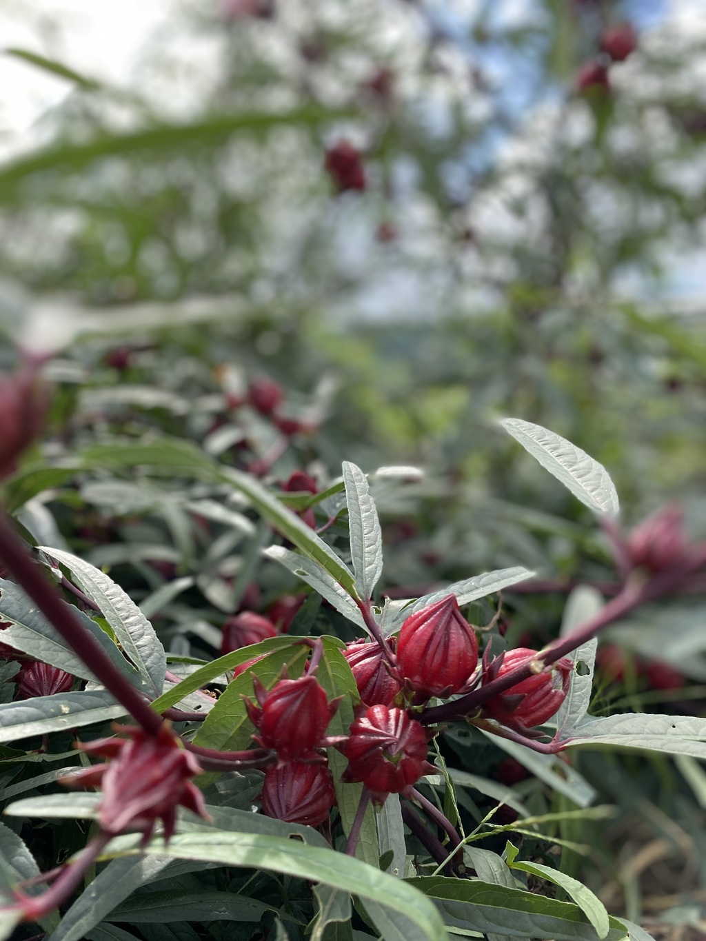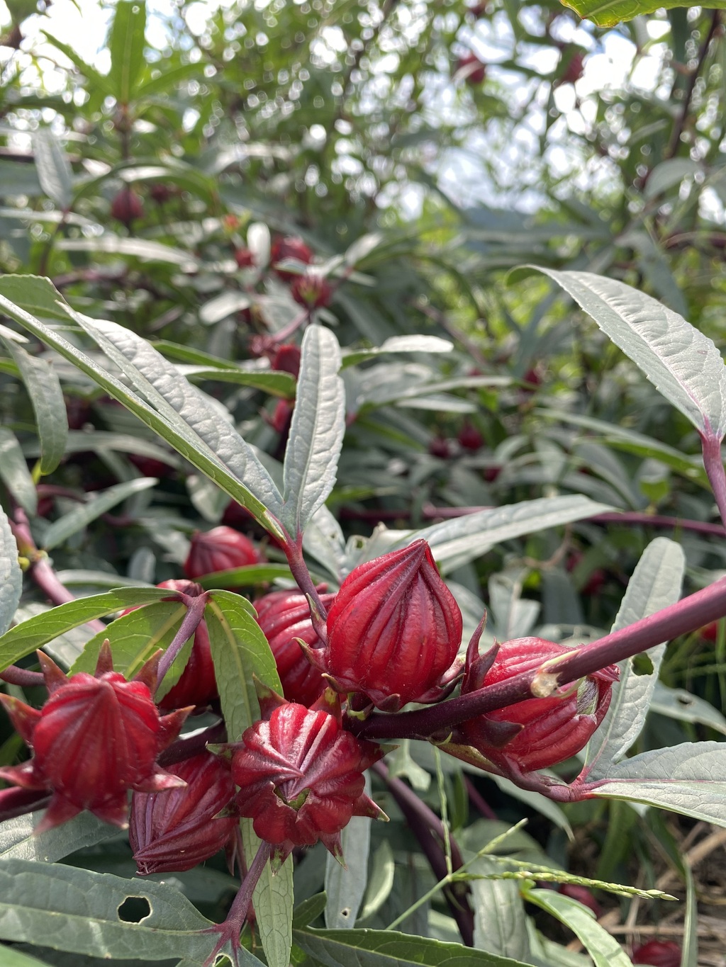 農薬を一切使用していませんので例年ですと破棄しなくてはいけないような実も沢山出てくるのですが今年はあの厳しかった猛暑に耐えたローゼルたちの出来がとにかく良く、とても綺麗な実が沢山なっています。