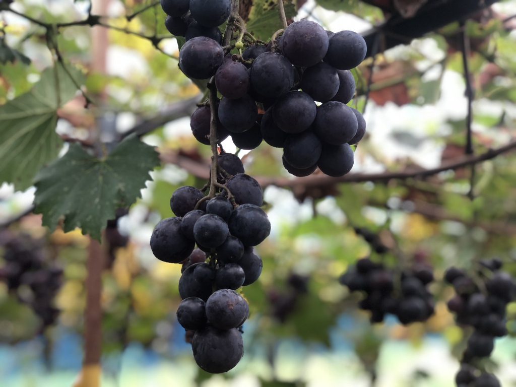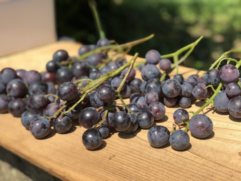 粒が大きいので食べ応えがあり、皮ごと頬張るとジューシーで、甘い果汁が口いっぱいに広がります。糖度を測ると20度近くあります! 種無し処理をしていないのですが、種が無い粒も結構あるので(小さめの粒は特に)、食べやすいです。