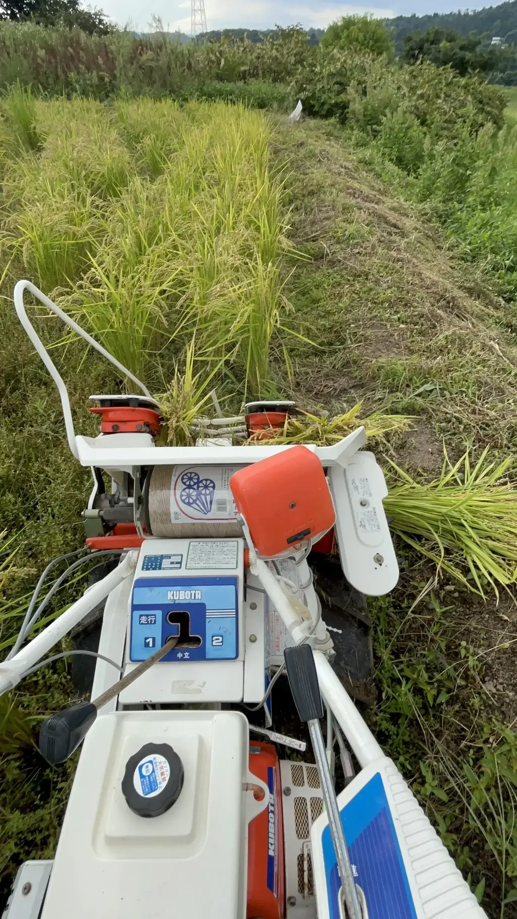 私は稲を天日干しさせるために、バインダーという機械を使って稲刈を行なっています。 バインダーは刈った稲を自動で麻紐で縛ってくれます。 その束になった稲を一つ一つ拾い集め、杭等に掛けて陽の光を当てて自然乾燥させます。 ゆっくりゆっくり時間をかけて乾燥させるので、旨味が増すと言われています。 自分で食べても本当に「美味しい〜!格別‼︎」と思いながら口にしています。