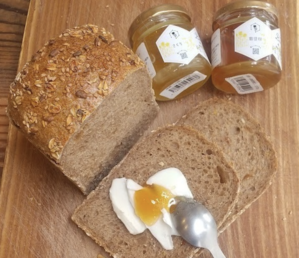 長野県産小麦80%と北海道産小麦20%を使用しています。長野県産小麦80%の内、30%は長野県小県郡青木村の無農薬小麦を玄麦で取り寄せ、当店内の製粉機で自家挽きした全粒粉を使用しています。