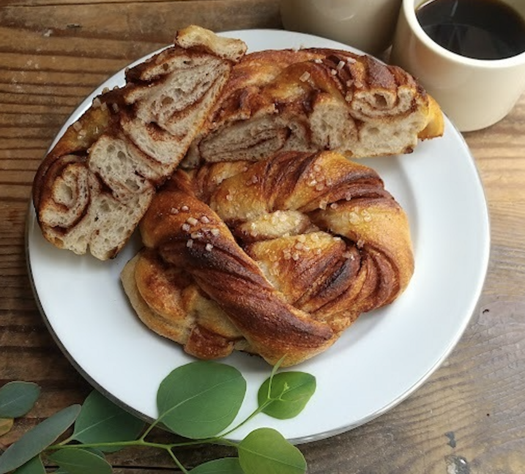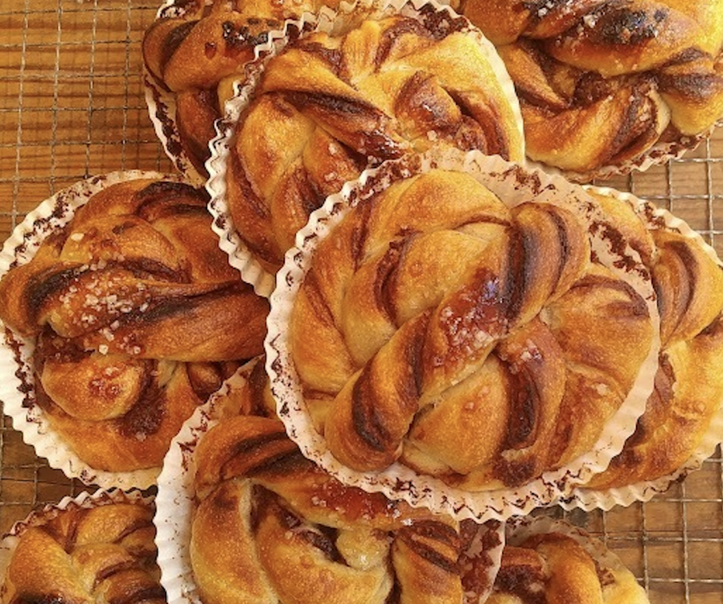 くるっと巻いて成型したスウェーデン風の<北欧シナモンロール〉。シナモンとカルダモンが香ります