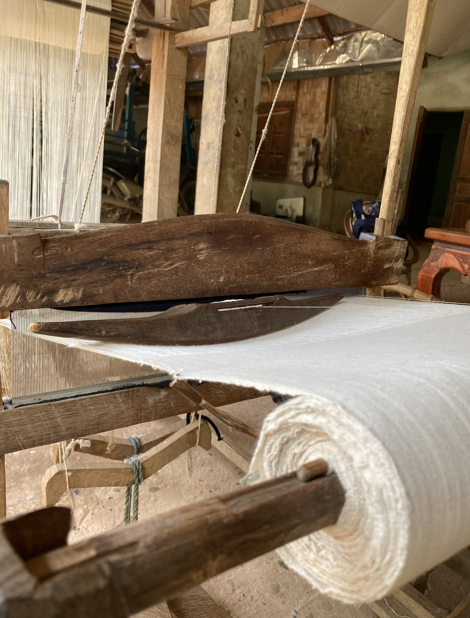 一度きりの箱と包み紙より、その後も大切にしたいもので包みたいと思っていた時に現地で出会った、レンテン族の手織りの布。