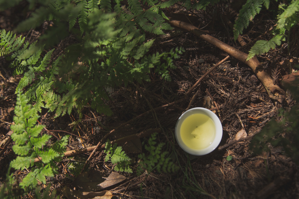 農薬・化学肥料使用せず栽培した茶葉を林の中で萎凋させ、香を引き出し、