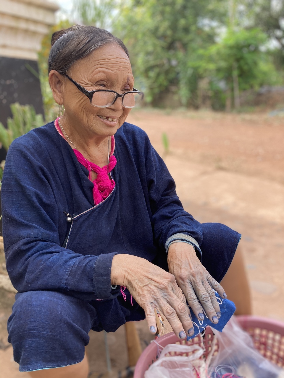美しい藍を染める、控えめなレンテン族のおばあちゃん。