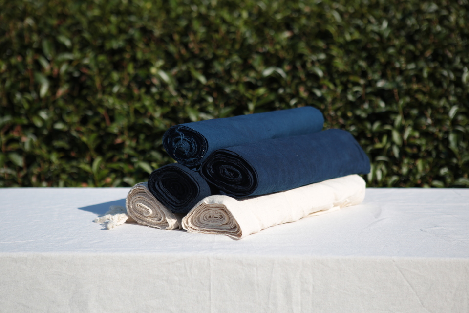 生成りの布では、貴重な布を余すことなくシンプルに裁断し、その後も手拭きとしてや布巾として、日常に取り入れることができる形に仕立てました。
