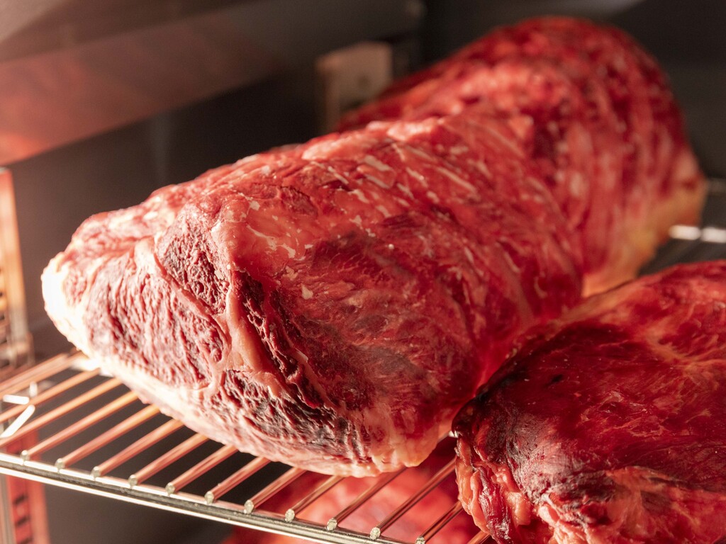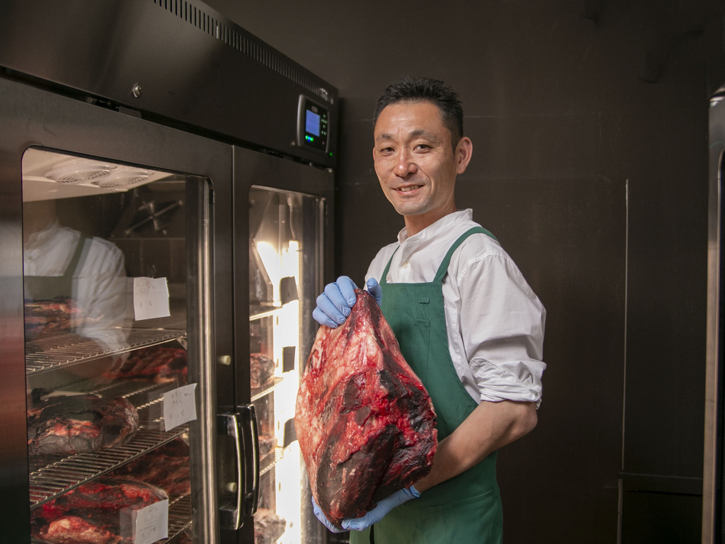 当たり前のことですが、そうして自然に育った牛には個体差があります。 体型も、体質も、牛それぞれです。 命を頂いた後のお肉は、経験豊富なスタッフがその一頭一頭の特徴と向き合いながら、より美味くするため、心を込めて熟成していきます。