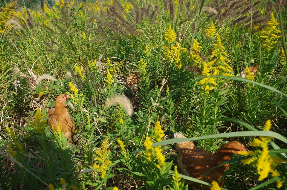 ヨモギやスイバ、チカラシバの種、ススキの新芽やセイタカアワダチソウの若葉など、鶏の好みには興味が尽きません。