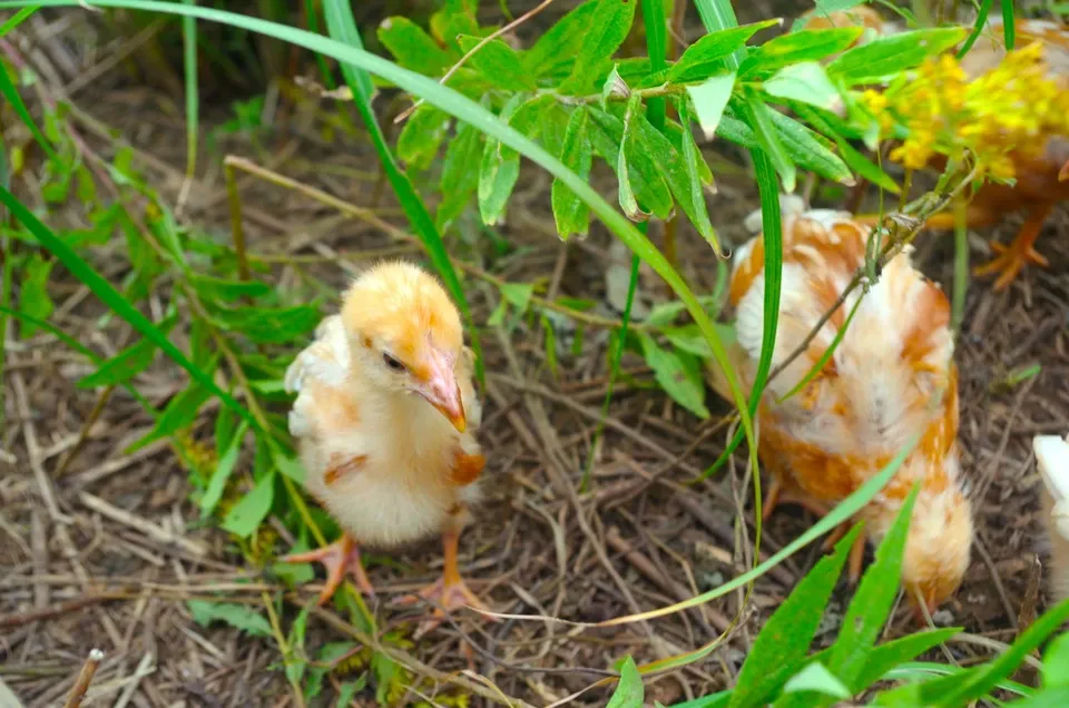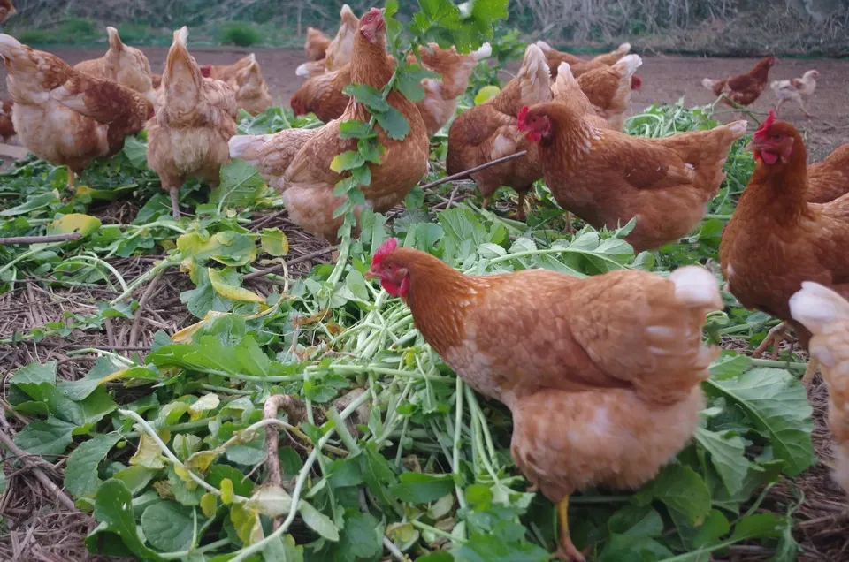 生きた草、種、草木の腐食、虫たち、、自然にあるものがニワトリのご馳走