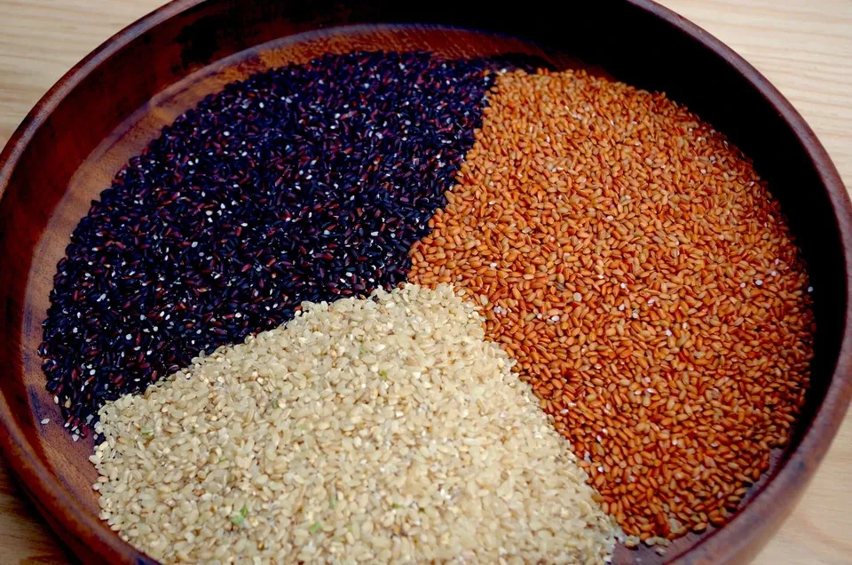ミネラル豊富な古代米(赤米・黒米)を混ぜています。