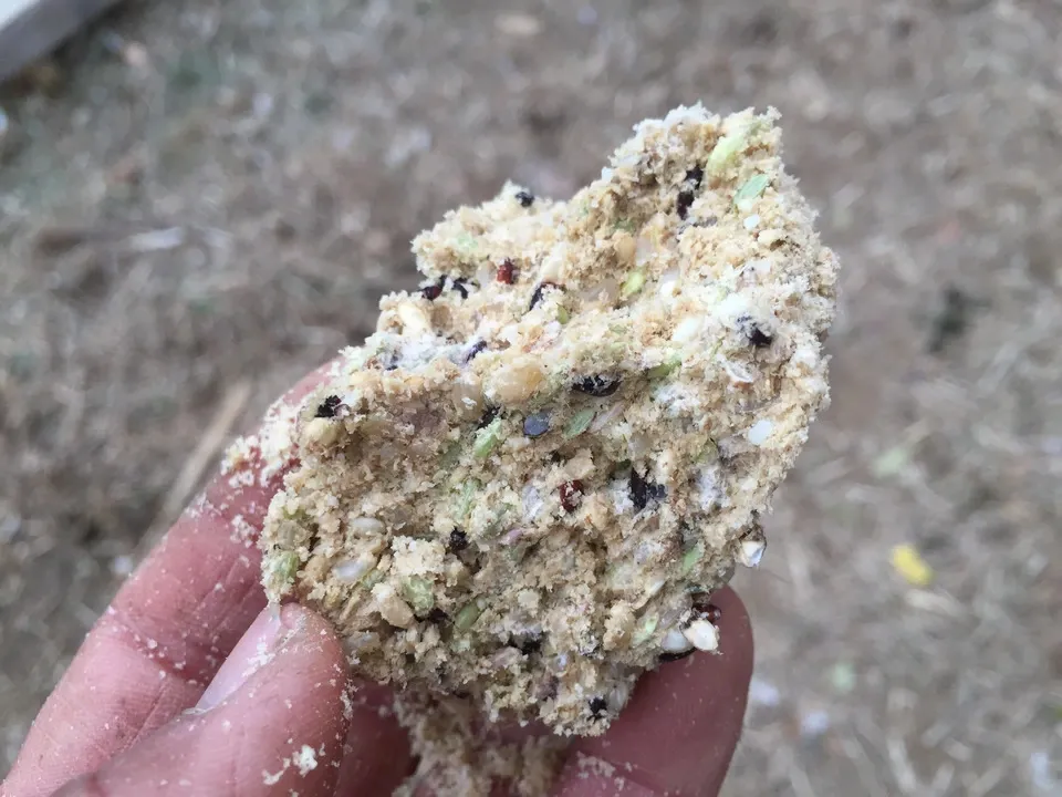 ニワトリは白い菌糸により固まりになったものを好みます。