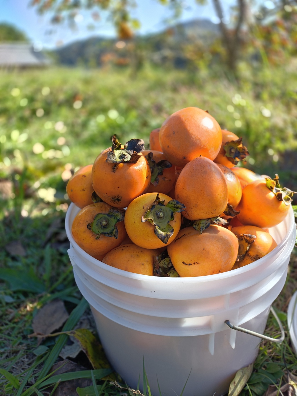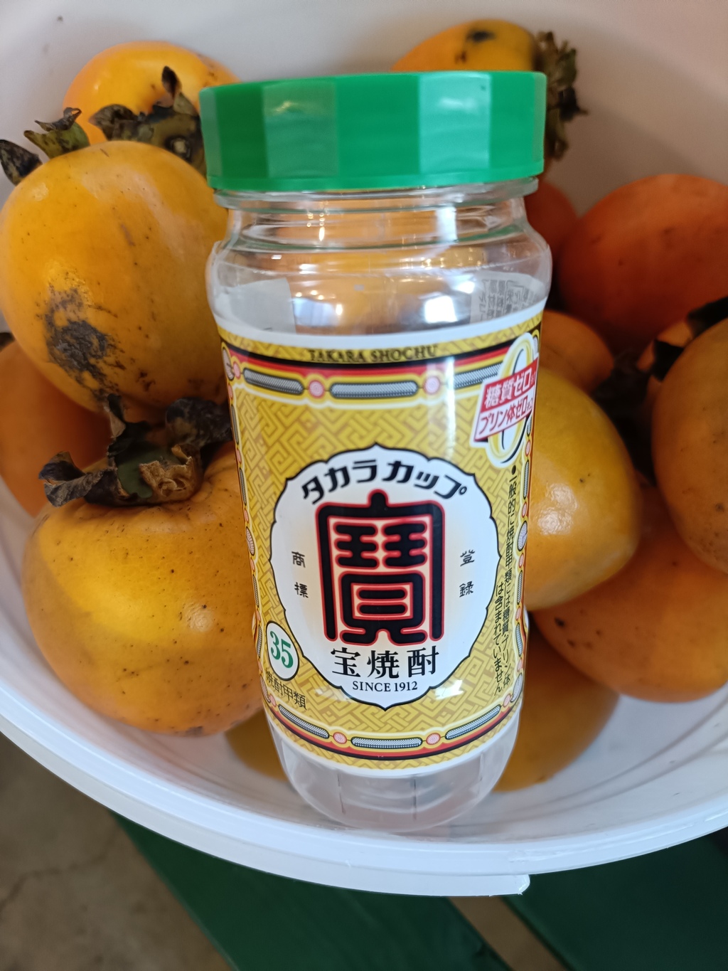 渋柿は焼酎で渋抜きしました♪ 吊るし柿も作りたいのですが、朝晩の冷え込みがそこまでなく、一昨年は全滅したので今年はもう少し寒くなるまで様子見です。