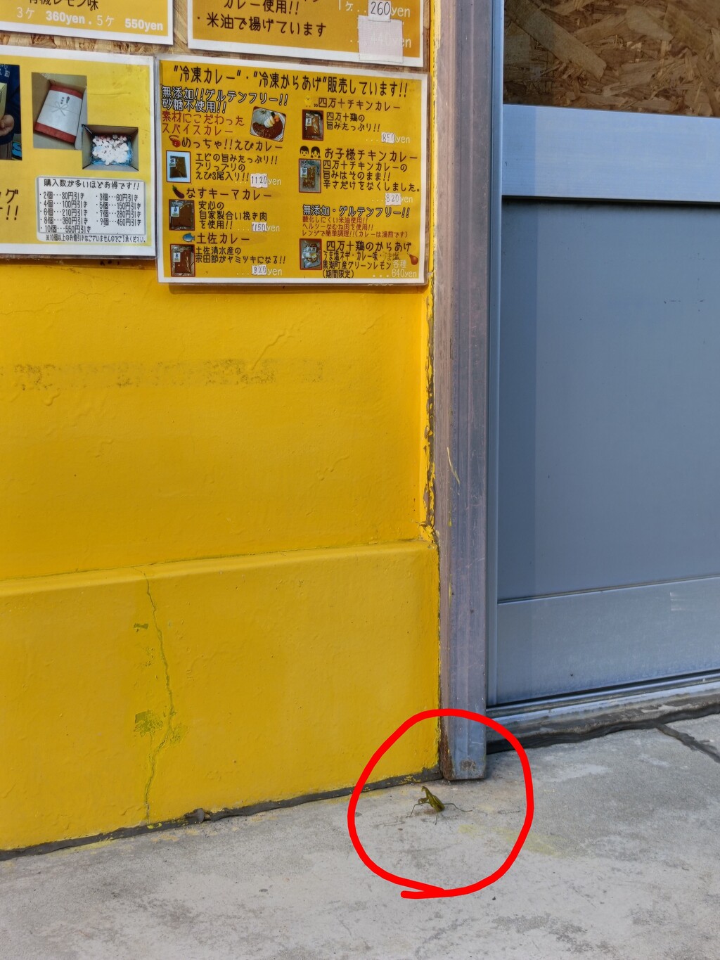 次の日にお店に行くと居なくなっていて、どこかへ行ったんだなーと思っていたらお店の壁にしっかりしがみついていました😅