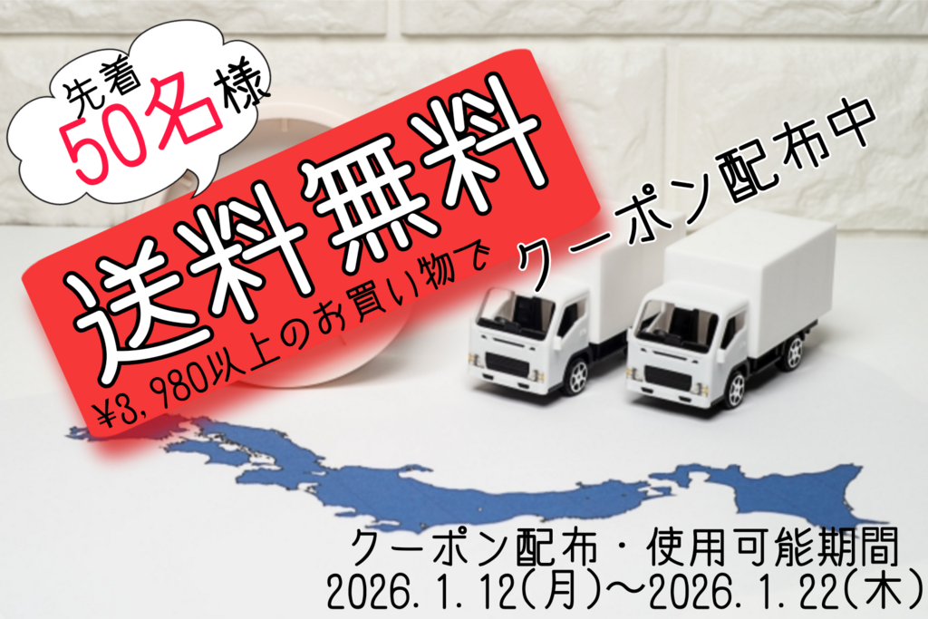 本日より送料無料クーポンを配布致します☺️ 使用可能期間は2026.1.12(月)〜2026.1.22(木)