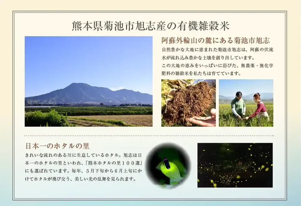 日本一のホタルの里、熊本県菊池市旭志産 無農薬・無化学肥料の有機 だんご粉