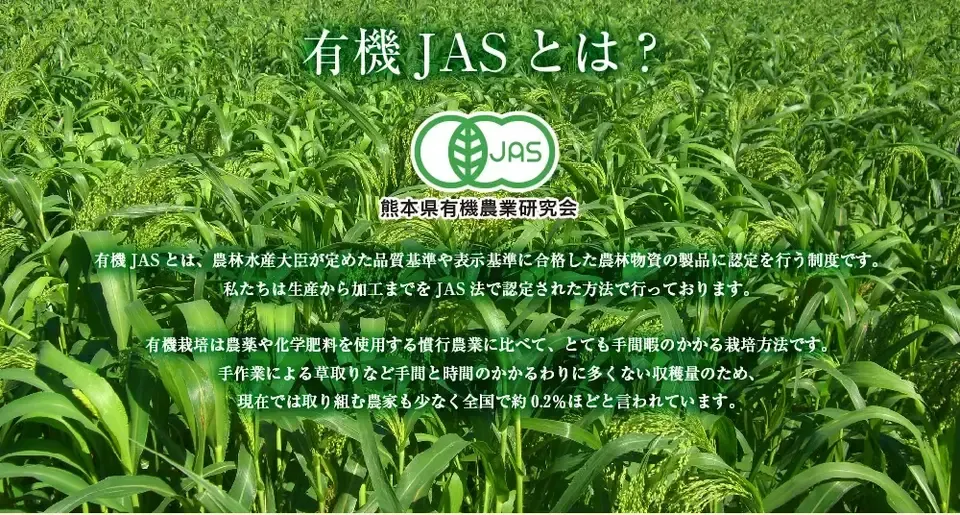 その生産と加工の基準は有機JASの認定を受け、最高の基準をクリアしております。食を通して人々の健康で幸せな未来を願い、社会貢献できる企業でありたいと思っております。