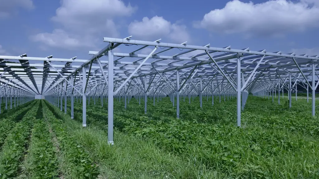 通常のソーラーよりも高い位置にパネルを設置して、また、太陽光が大豆の生育に必要十分な光量が行き渡るように、間隔を開けて設置されており、太陽光発電と大豆栽培の2刀流で活動されています。
