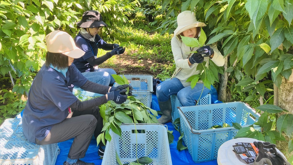 今後は、生徒さんたちにもお手伝いをいただきながら本収穫に入ります。私たちにとっても初めての取り組みであり、とても楽しみです。9月中旬までは、日の出から収穫、日中に除草作業、夕方に天日で乾燥させた杜仲葉の回収と、大忙しの日々が続きます。次回は、生徒さんたちとの収穫の様子をお届けします。