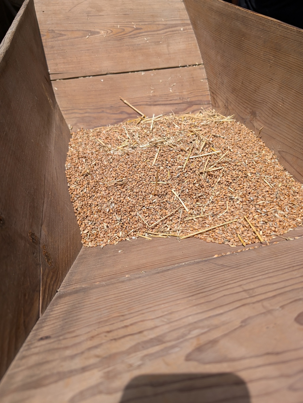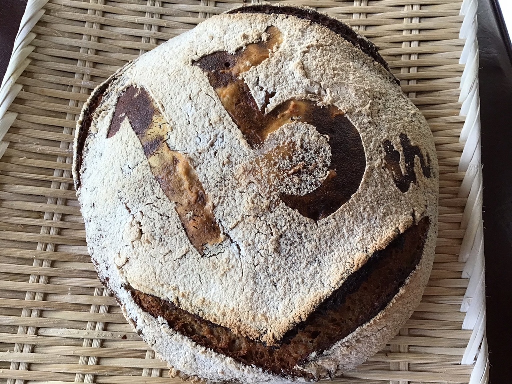 暑すぎて長すぎた夏、秋を充分に堪能できないままもう11月です、足早に色づきだした山の木々も霜にあたり、きれいな紅葉ではなく枯れてすぐにも落ちそうな葉っぱたち、栗などの実ものの恵みも山の動物たちにも充分ではなかったようで、各地に熊の被害のニュース・・・おそるおそる犬の散歩に近くの山裾を歩きます。たわわに実る柿、小さいけど落ちたままになってる栗、庭木のかりんの実もなぜだか落ちたまま、昔は人間がとっておいて冬中食べるために保存しておいたのでしょうが、こういうものを熊はめがけてくるのかも。ここ10年くらいで里山の荒廃とともに山の木々が巨大化してきています。 あとは野となれ山となれ・・・なげやりになってはいけないけどさあ、米の増産とか国の方で騒いでいるがこんな里山の地域は一度止めてしまった田んぼは復活できないよなあ、そもそもマンパワーも足らないし、などいろいろ考えながら、去年初めて小麦を蒔いて収穫してみた畑の横を通り、そろそろ蒔く時期だったと我にかえりいつか自家栽培の小麦でまかなえたらとまた妄想。初めての収穫は少しの上、半分ダメにしてしまいましたのでまだまだ遠いかなあ、写真は店をオープンして15周年記念カンパーニュ、その小麦で作りました。しばらくの間ご来店のお客様にスライスしてお配りし好評でした。