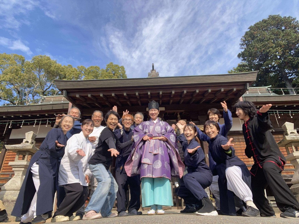 すっかりホーム感が漂う、地元の住吉神社で、イセヒカリと太極拳の奉納。