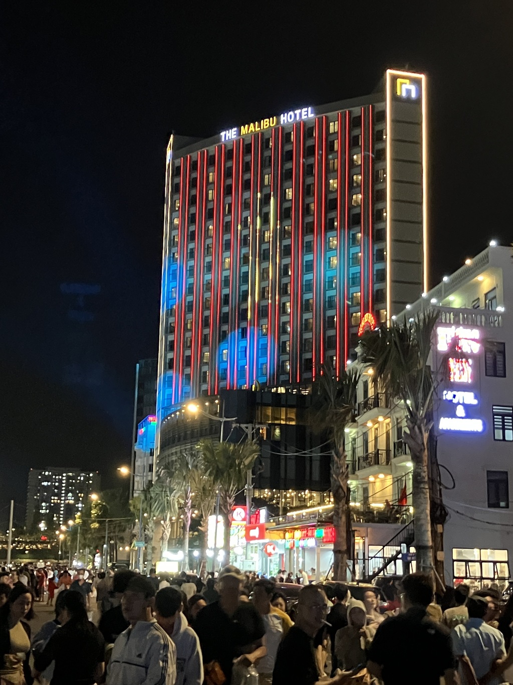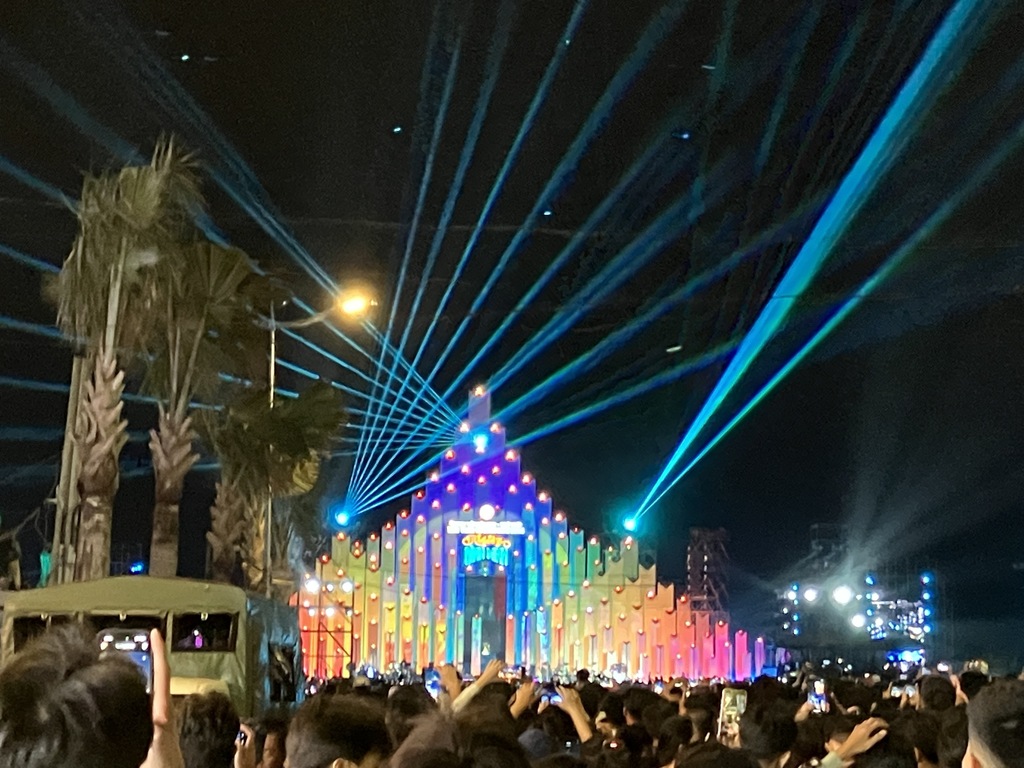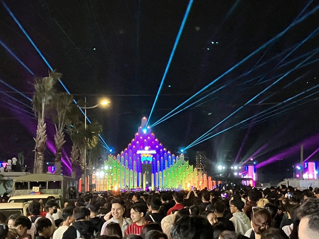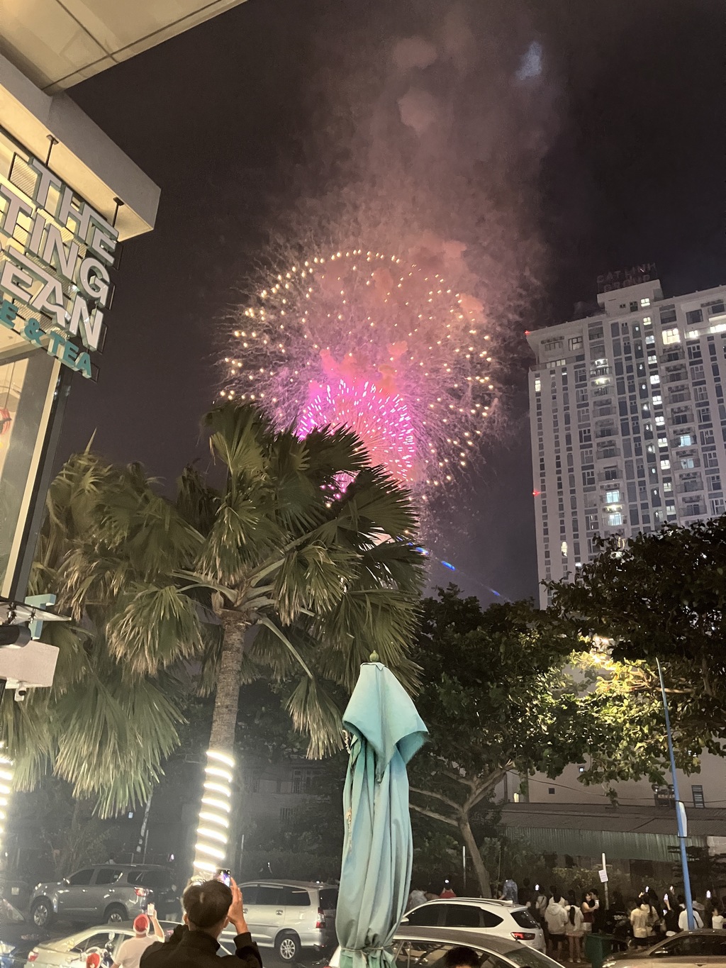 2025年の大晦日、ブンタウのバックビーチ沿いにある新しいランドマーク「タムタンタワー(Tháp Tam Thắng)」では、年越しライブとカウントダウンイベントが開催されました。 12月31日のカウントダウンから1月1日0時にかけて、約15分間にわたり連続して花火が打ち上げられ、ブンタウの夜空を鮮やかに彩りました。