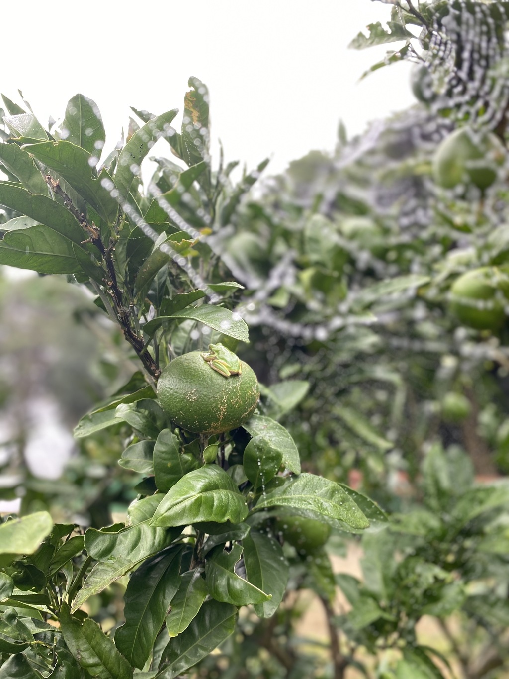 不耕作地と化した果樹園の草を刈りこみ、改植しながら、自然栽培をしている果樹農園です。たくさんの雑草と生物たちのおかげで、ふかふかの土が出来上がっている土壌を活かして無施肥・無農薬で収穫しています。