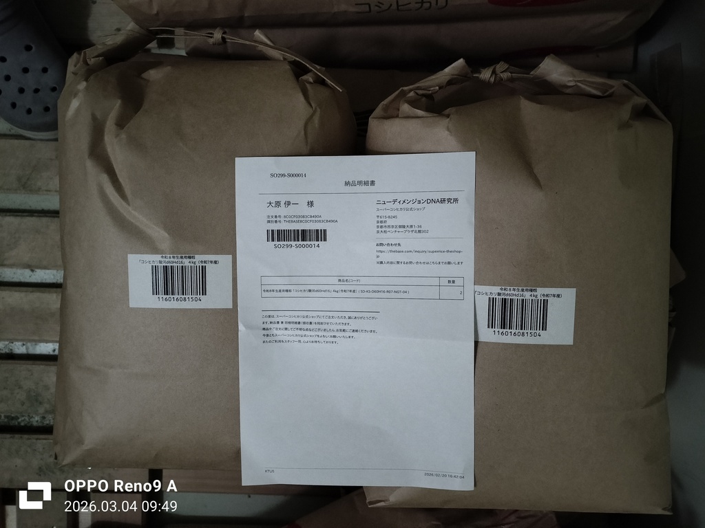 全国で今年から限定的に栽培が始まる温暖化に強いスーパーコシヒカリ駿河の種籾が到着しました。大原農園にとって地球温暖化対策の決め手に育てて行きたいと思っています。高温に強く遺伝子構造が99%コシヒカリで今人気の粒が大きめで食味は、コシヒカリのままという有望品種です。 当農園での今年栽培は、種籾が高額な事と種籾の物量が圧倒的に少ないので試験栽培程度の少ない面積(30a予定収穫量1,500Kg)で、今まで通りの残留農薬検出ゼロ栽培です。 田植えが終わり次第、生粋コシヒカリ伊助とスーパーコシヒカリ駿河の「食べ比べセット」を限定予約販売を致します。 スーパーコシヒカリ駿河の日本農業新聞掲載は、下記アドレス https://www.agrinews.co.jp/news/prtimes/350209