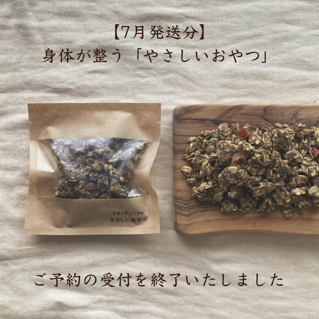 【7月発送分】身体が整う「やさしいおやつ」 ご予約の受付を終了いたしました。