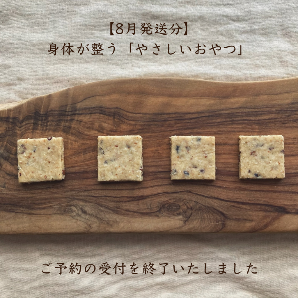 【8月発送分】身体が整う「やさしいおやつ」ご予約の受付を終了いたしました。