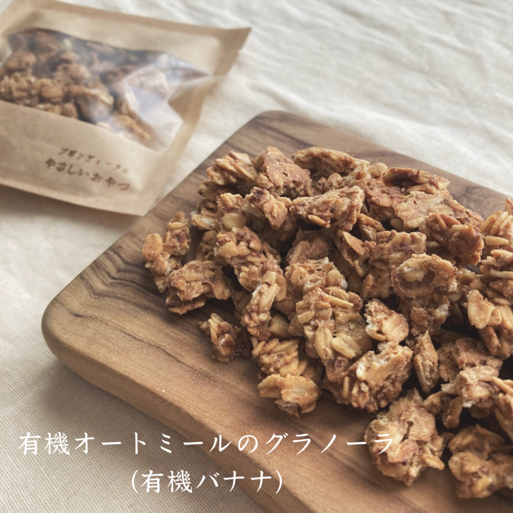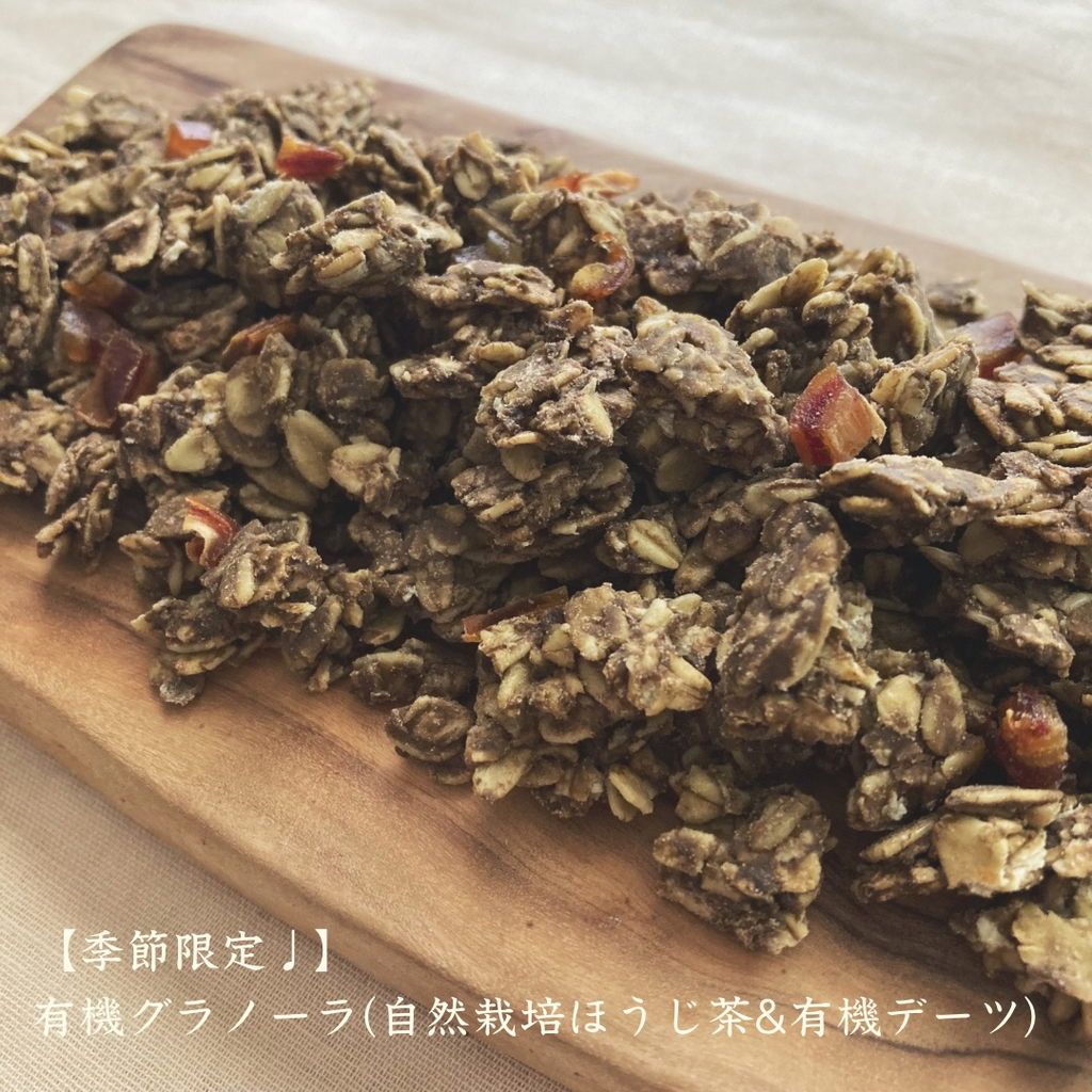 定番の有機グラノーラ、プレーンの有機グラノーラ、【季節限定】の有機グラノーラ、【新商品】の有機バナナのグラノーラ、無農薬米粉のクッキーなどなど、
