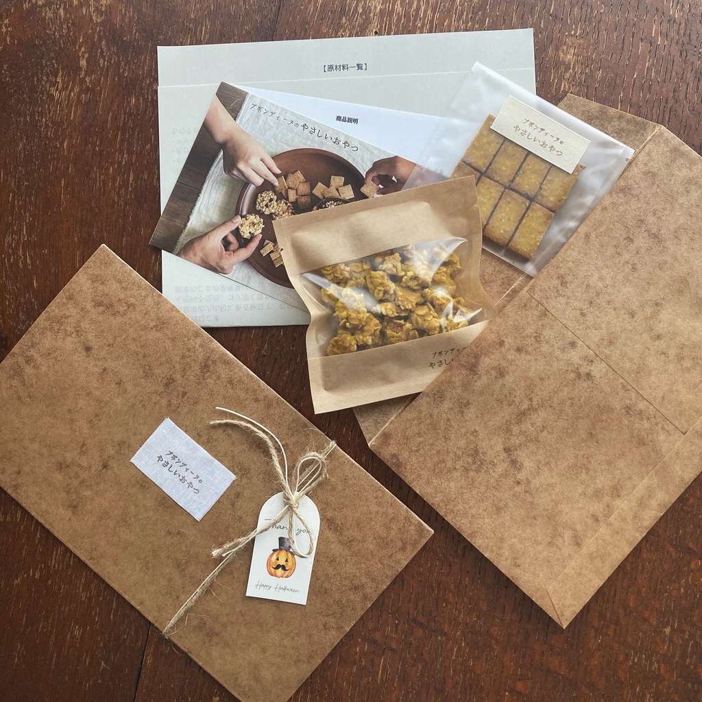 【原材料】:栽培期間中農薬不使用かぼちゃ(北海道産)、栽培期間中農薬不使用米粉(米(京都産))、有機アーモンドプードル(アメリカ産)、有機ココナッツオイル(フィリピン産)、有機片栗粉(北海道産)、自然海塩(長崎五島列島)、(一部にアーモンドを含む)