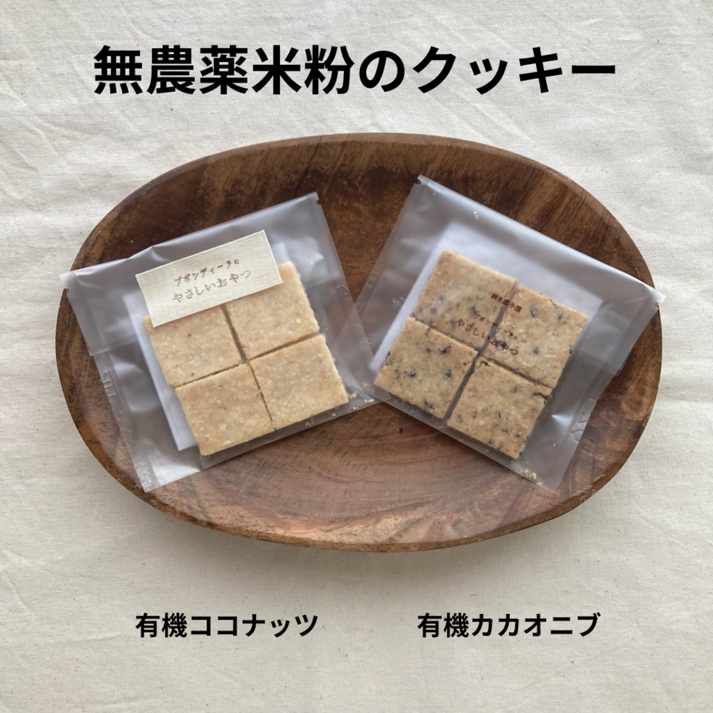 【原材料】 栽培期間中農薬不使用米粉(米(京都産))、有機オートミール(アメリカ産)、有機片栗粉(北海道産)、有機アーモンドプードル(アメリカ産)、有機ココナッツオイル(フィリピン産)、菜種油(農薬不使用菜種(熊本県産))、有機カカオニブ(ペルー産)、自然海塩(長崎県五島列島)、(一部にアーモンドを含む)