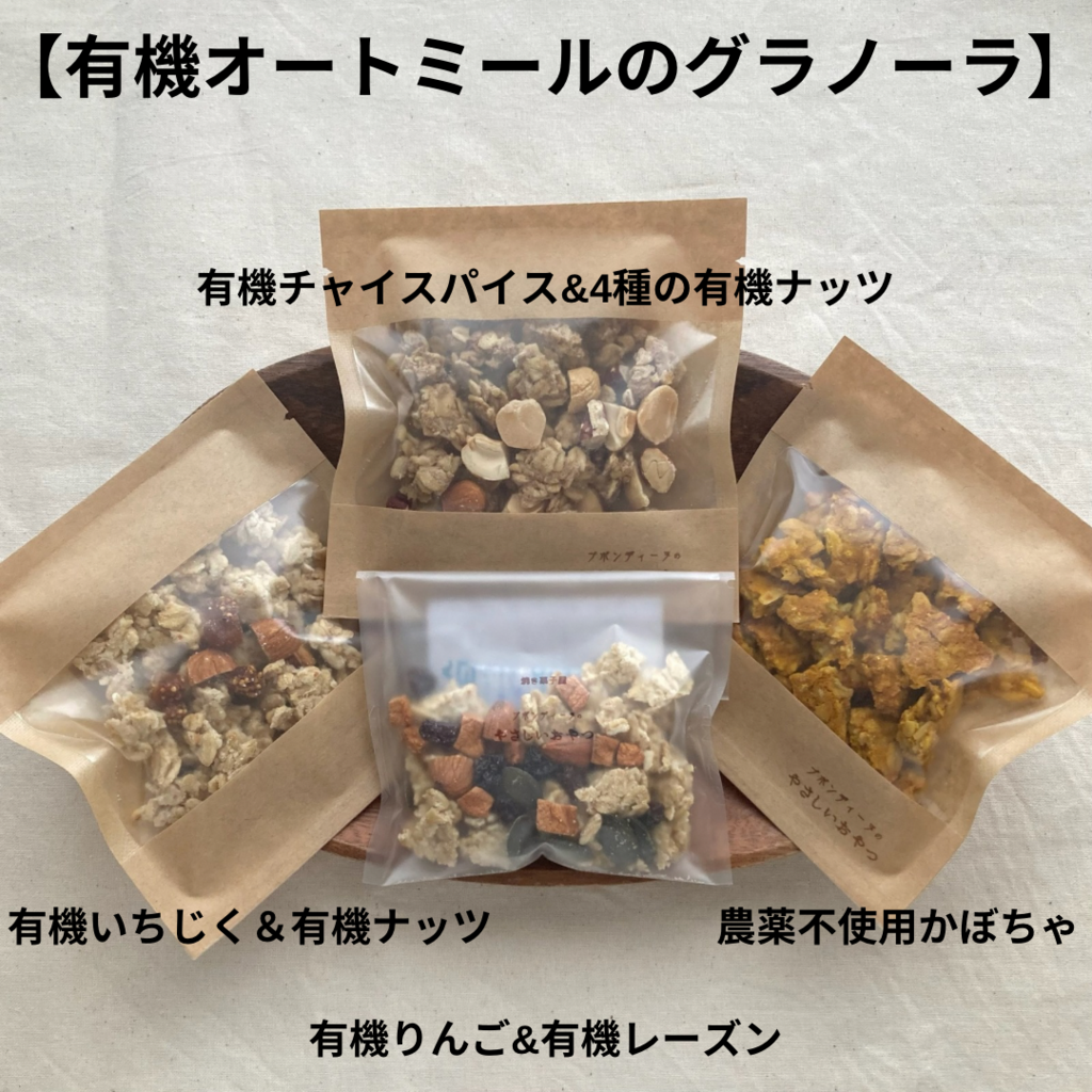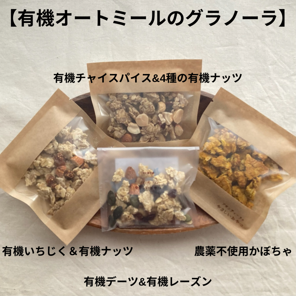 小麦・卵・乳・砂糖(全ての甘味料を含む)不使用《甘くない》有機オートミールのグラノーラ・無農薬米粉のクッキー