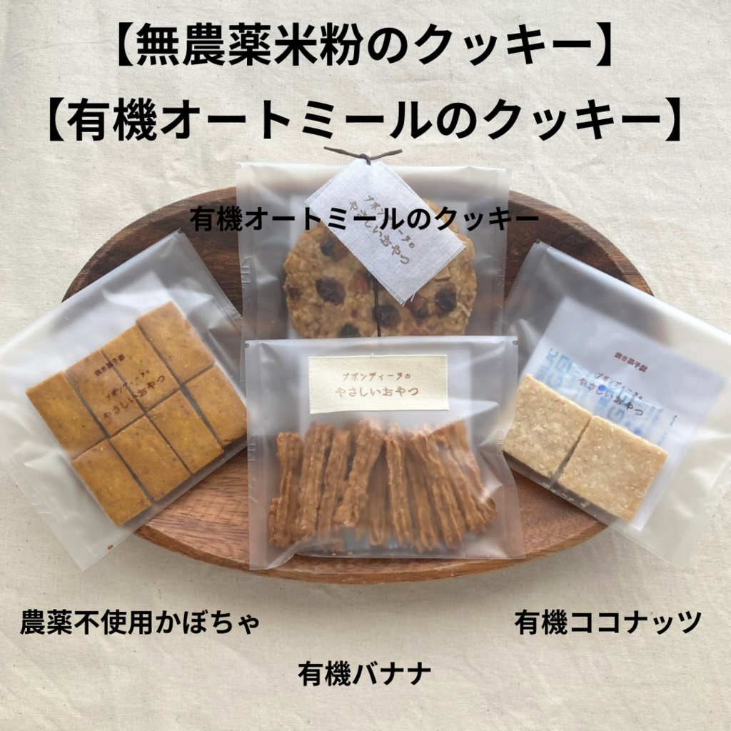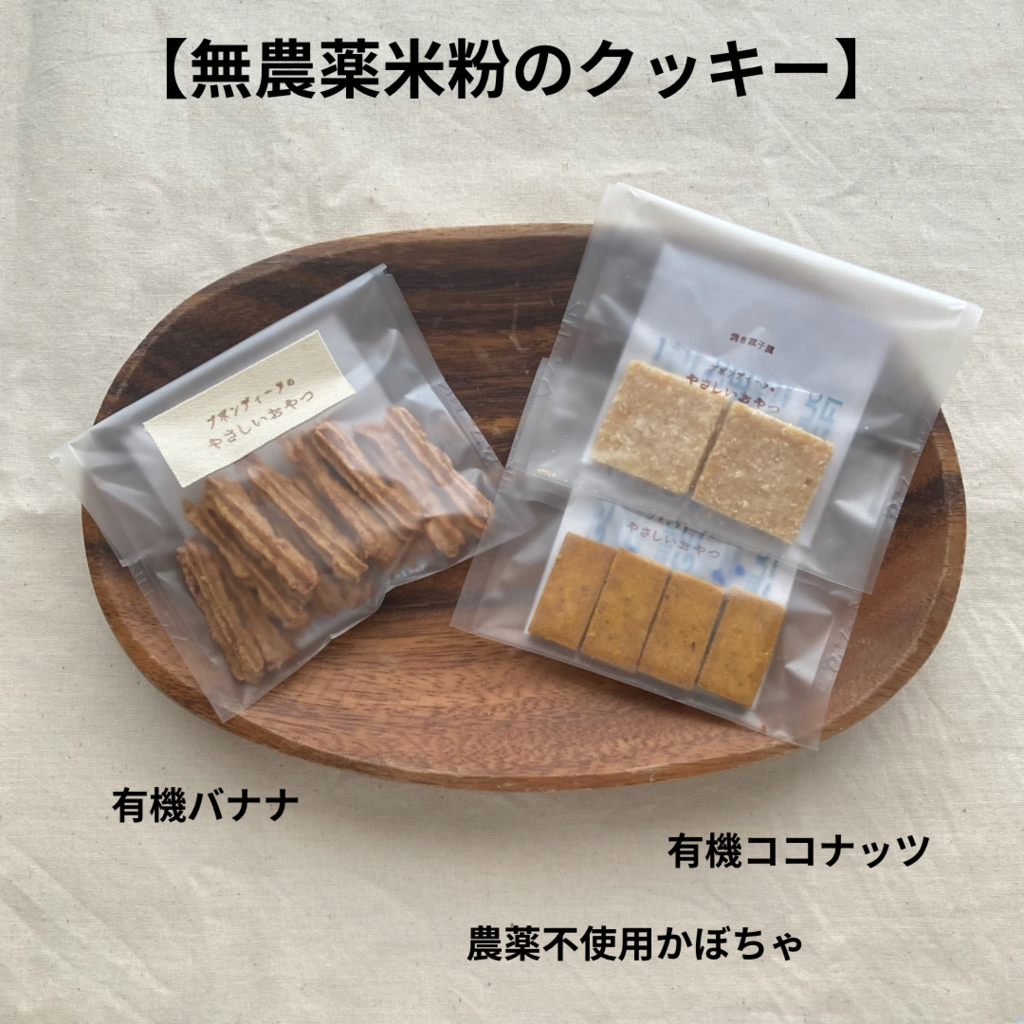 【原材料】 有機バナナ(エクアドル産)、栽培期間中農薬不使用米粉(米(京都産))、有機オートミール(アメリカ産)、有機片栗粉(北海道産)、有機アーモンドプードル(アメリカ産)、有機ココナッツオイル(フィリピン産)、菜種油(農薬不使用菜種(熊本県産))、自然海塩(長崎県五島列島)、(一部にバナナ、アーモンドを含む)