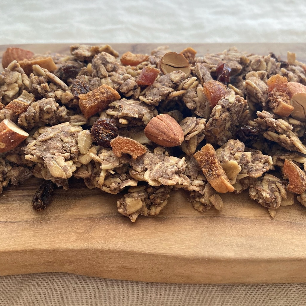 有機オールスパイスと有機シナモンをの芳醇な爽やかな香りがたまりません♩ 3種(有機レーズン.有機いちじく.有機デーツ)のフルーツ、アクセントの香ばしいまろやかでクリーミーな有機アーモンド、ガツンとスパイス香るオーツ麦、それぞれの個性の調和をぜひお楽しみください✨