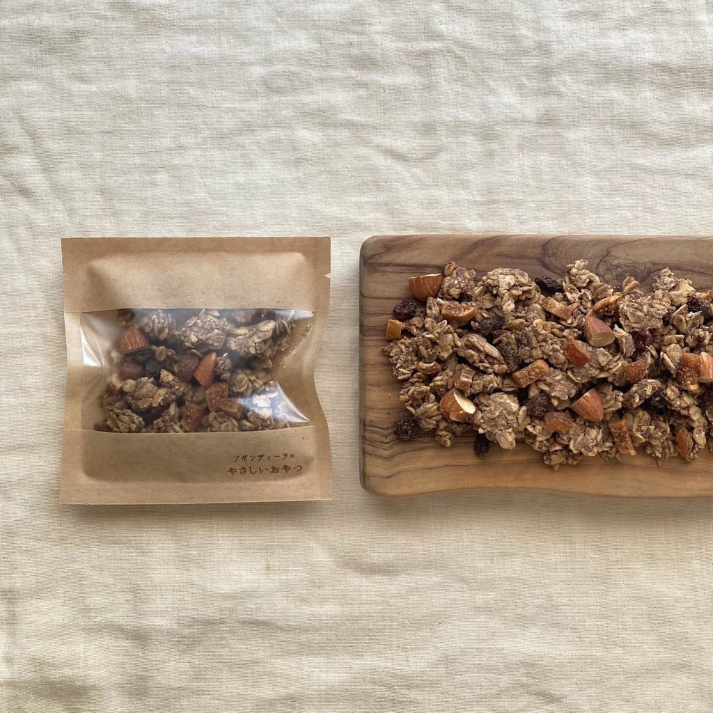 【原材料】:有機オートミール(有機オーツ麦(アメリカ産))、栽培期間中農薬不使用米粉(米(京都産))、菜種油(農薬不使用菜種(熊本県産))、有機ココナッツオイル(フィリピン産)、有機レーズン(トルコ産)、有機アーモンド(アメリカ産)、有機いちじく(トルコ産)、有機デーツ(チュニジア産)、有機オールスパイス(グアテマラ産)、有機シナモン(スリランカ産)、自然海塩(五島列島)、(一部にアーモンドを含む)