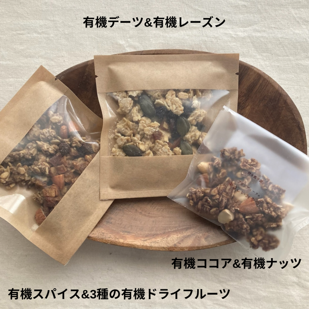 【原材料】 有機オートミール(有機オーツ麦(アメリカ産))、栽培期間中農薬不使用米粉(米(京都産))、菜種油(農薬不使用菜種(熊本県産))、有機アーモンド(アメリカ産)、有機レーズン(トルコ産)、有機かぼちゃの種(オーストラリア産)、有機デーツ(チュニジア産)、有機ココナッツオイル(フィリピン産)、自然海塩(五島列島)、(一部にアーモンドを含む)